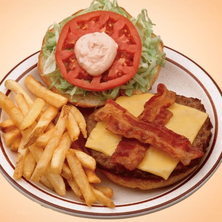 Topped with American cheese, lettuce, tomato and special sauce on a toasted semmel. Served with French fries and one choice selection.