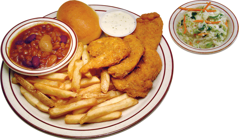 Includes choice of wild rice blend or French fries or potato salad plus coleslaw, rye bread, and sauce
